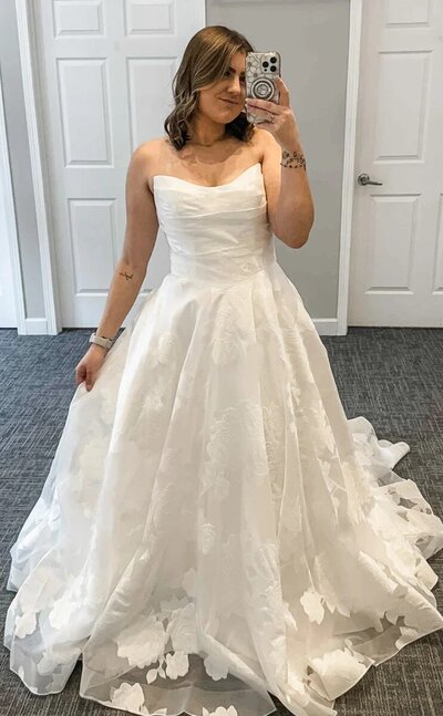 A & J Bridal is for the bride who dreams in lace and sparkle. This collection is all about romance and detail. From figure-flattering fit and flares, to timeless A-lines and Ballgowns, each gown is designed with stunning lace, shimmering fabrics, and soft layers of tulle and florals-made to make you feel breathtaking from every angle.